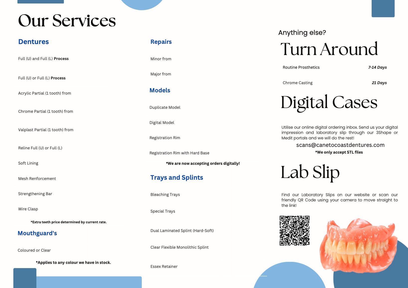 We offer a broad range of laboratory services focused on delivering precise, reliable and efficient solutions to support dentists in providing exceptional care. Get in touch with us for all enquiries.